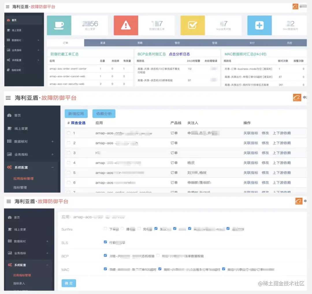 通过监听aone、diamond、mysql等变更消息,建立应用和业务的监控指标池(sunfire,sls,bcp,mac),监控指标覆盖实时,准实时,离线,量级,转化率,漏斗等多维度。