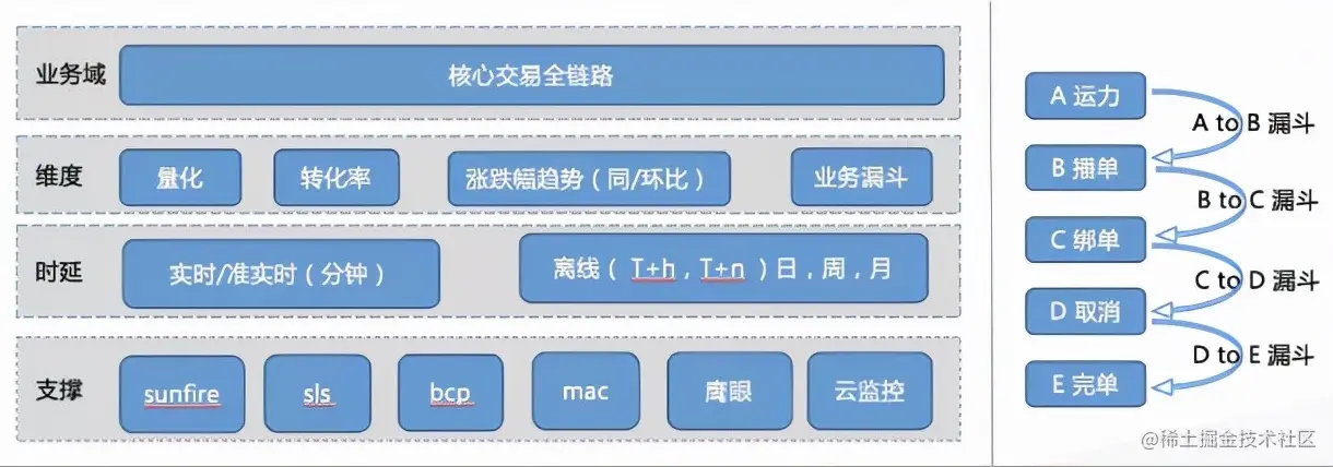 实现复杂联合运算监控,sunfire功能限制,只能做到量级监控,只支持列与列之间的简单运算,研究分析,基于数据的binlog,清洗后规范化输出,利用sls的查询语法和分析语法,聚合计算出实时和准实时的转化率,业务漏斗指标,还实现了钉钉和电话报警,统一收口到故障防御平台。
