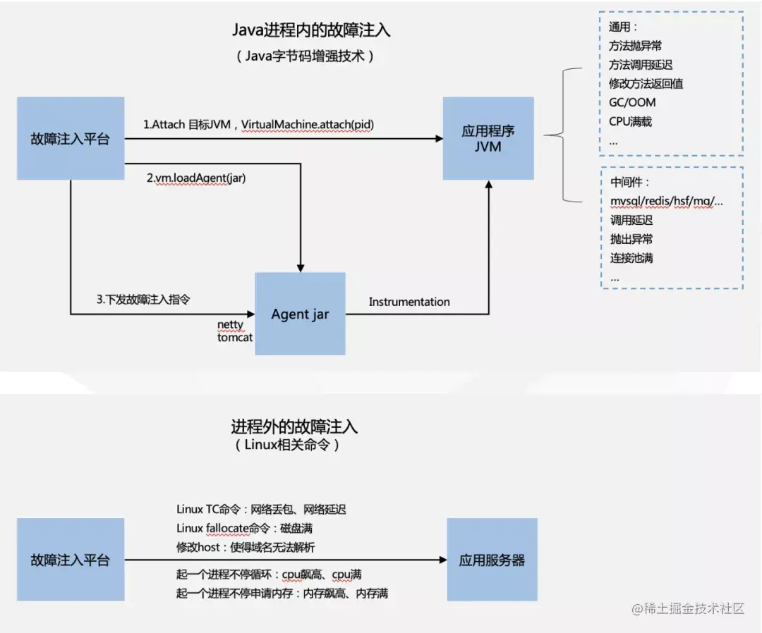 故障注入和混沌工程演练使用的是集团的MonkeyKing,其实现故障注入的原理可以简单总结如下: