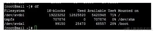 上述两个命令可以使用-h参数,命令为df -h和df -hi。从图中看见磁盘空间使用71%,但是inodes使用100%。