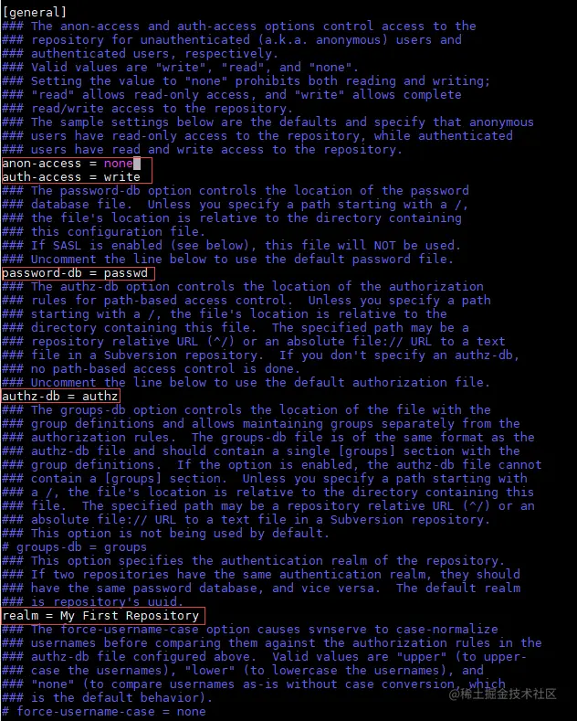 修改svnserve.conf文件