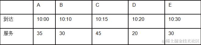 10:40 作业E等待10分钟,响应比R=1+10/30 = 1.3