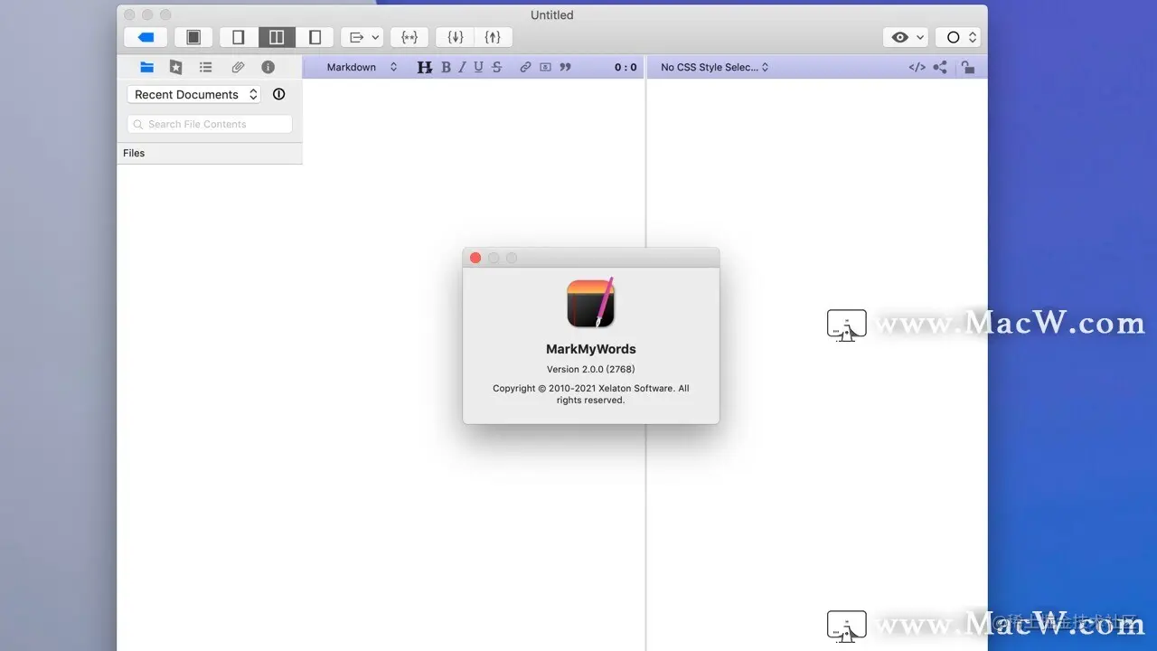 MarkMyWords mac版是Macos上一款强大的 Markdown 编辑工具。支持:Markdown + Extra、MultiMarkdown、Textile、Wikitext、BBCode、HTML等语言。内置多种 CSS 样式,并可以使用自己编写的 CSS 样式进行预览。MarkMyWords mac下载可以导出为多种格式:RTF/RTFD/HTML/DOC/ODT/PDF/Textbundle/Textpack。另外 MarkMyWords 支持无干扰写作模式。