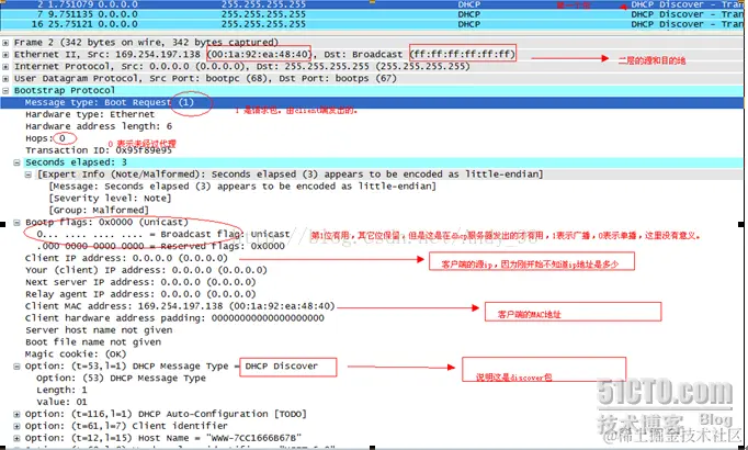 | Discover | PC机的MAC | 全FF | 0.0.0.0 | 255.255.255.255 |