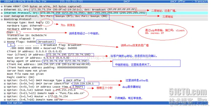 | Offer | Dhcp服务器或者中继器路由的MAC | Dhcp客户机的MAC | Dhcp服务器或者中继路由器的IP地址 | 准备分配的IP地址 |