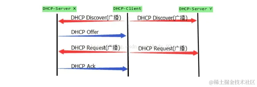 当DHCP客户机分配到IP后,每次当DHCP客户机重新登录登录时, 则不需要发送DHCP Discover信息了,而是直接发送包含前一次所分配的IP地址的DHCP Request请求信息。当DHCP服务器收到这一信息后, 它会尝试DHCP客户机继续使用原来的IP地址, 并回答一个DHCP Ack确认信息。 如果此IP地址无法继续在分配给原来的DHCP客户机使用时(比如此IP地址以分配给其他DHCP客户机),则DHCP服务器给DHCP客户机回答一个DHCP NAck否认信息。 当原来的DHCP客户机收到此DHCP NAck否认信息后, 它必须重新发送DHCP Discover信息来重新请求信的IP地址