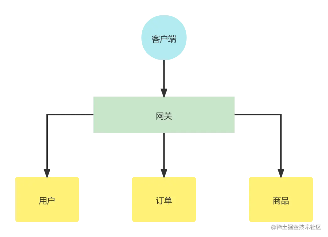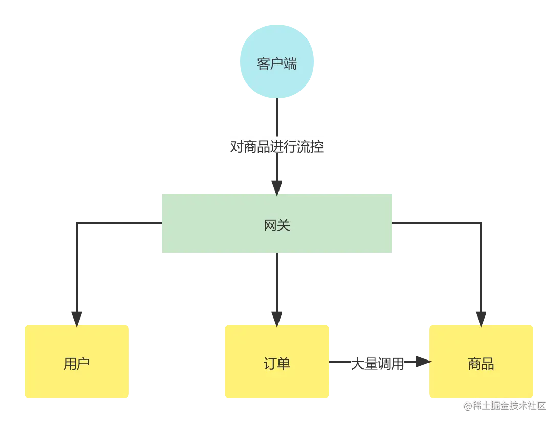 我想大部分公司的架构都是下面这样子的,网关在最前面,充当了守门员的工作。请求想要进来,必须经过网关,所以在网关层面做流控是最合适的,没有之一。