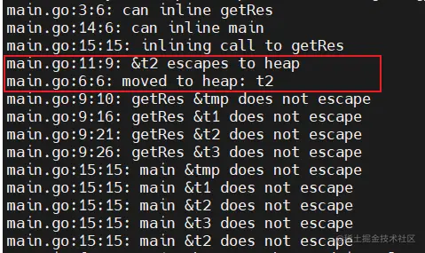 那么我们使用 go 提供的工具来看看这个程序是不是存在逃逸