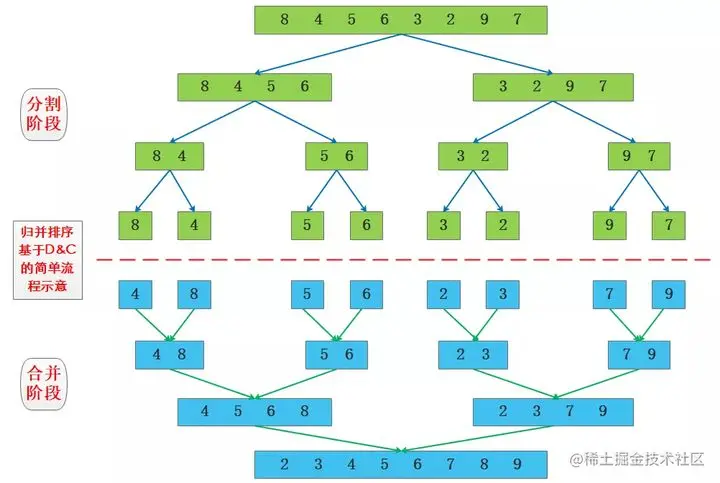 - 快速排序和归并排序的分治过程对比