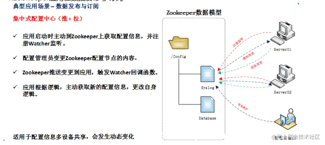 ****需要发布者将数据发布到Zookeeper的节点上,供订阅者进行数据订阅,进而达到动态获取数据的目的,实现配置信息的集中式管理和数据的动态更新。