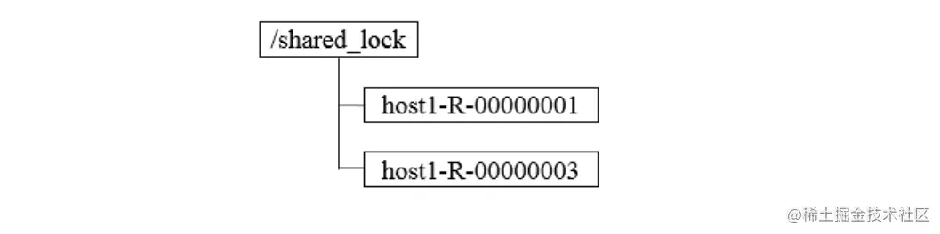 - 共享锁又称为读锁,若事务T1对数据对象O1加上共享锁,那么当前事务只能对O1进行读取操作,其他事务也只能对这个数据对象加共享锁,直到该数据对象上的所有共享锁都被释放。在需要获取共享锁时,所有客户端都会到/shared_lock下面创建一个临时顺序节点