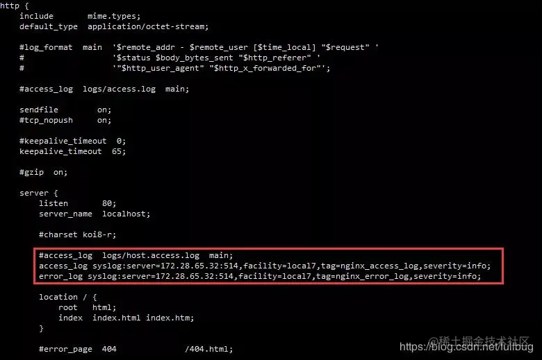 通过syslog往日志服务器上发nginx的日志有两种方式,一种就是利用nginx的配置往外发日志,一种就是通过配置linux的rsyslog的配置往外发日志。