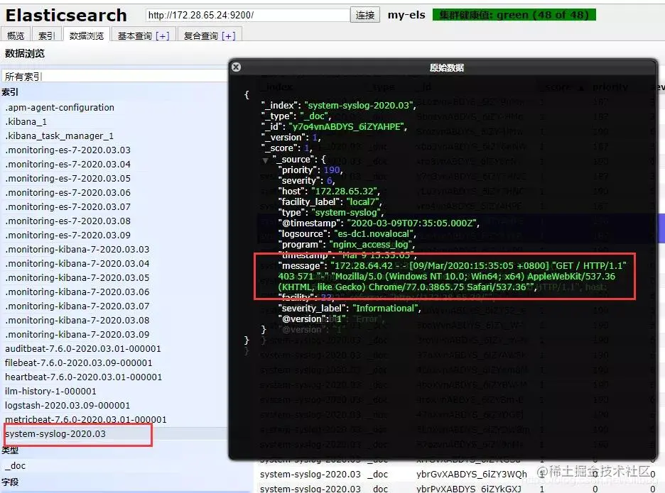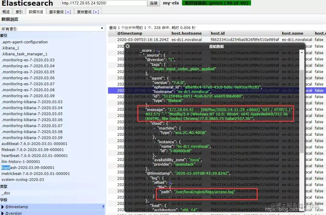 通过elasticsearch-head插件查看es索引中的日志信息