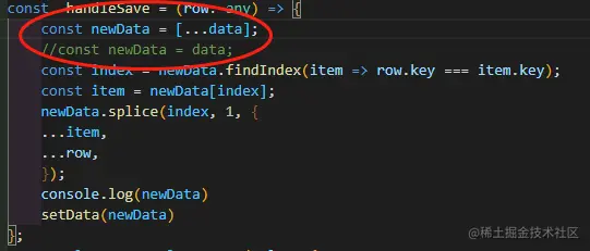 antd4 Table组件可编辑 修改数据之后 组件没有重新渲染 波波苏 2021-10-26 2,476 阅读1分钟 编辑修改数据之后 发现页面未发生渲染刷新,但是打印的数据已经改变了 我们在原来的对象上修改数据,react目前新版本会认为虚拟dom没有发生变化 所以,新建一个和原来数据一样的对象,就能解决上述问题。