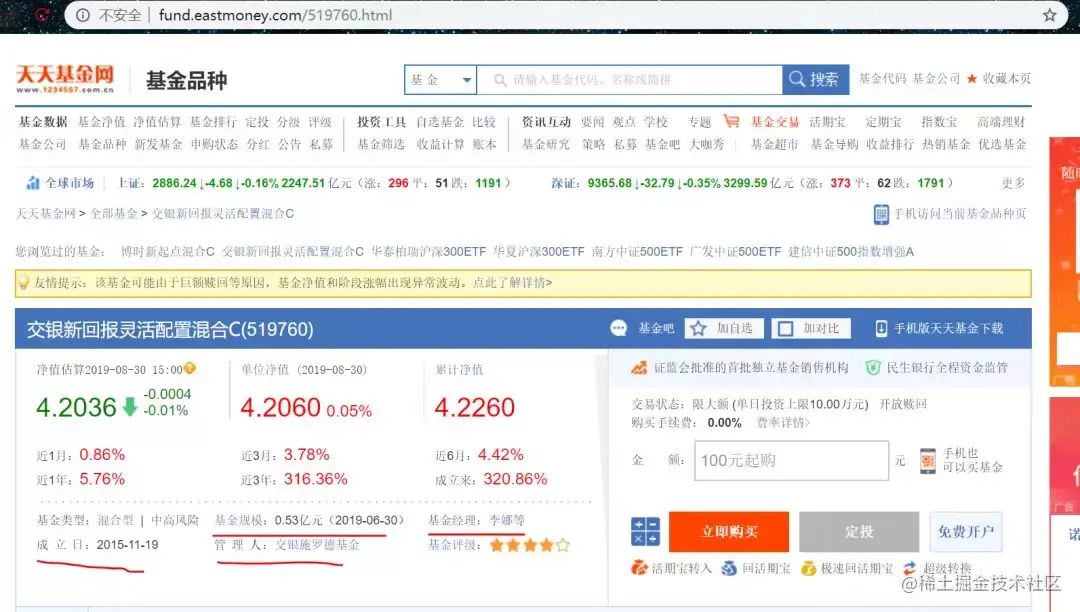 “天天基金网”的混合基金的参考数据