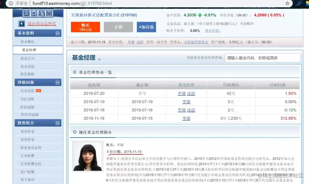 从获取的经理链接,访问,获得经理上任时间