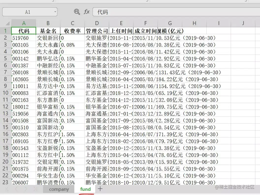 获取每支基金的代码,基金名,收费率,管理公司,经理上任时间,基金成立时间,基金规模,以及公司排名