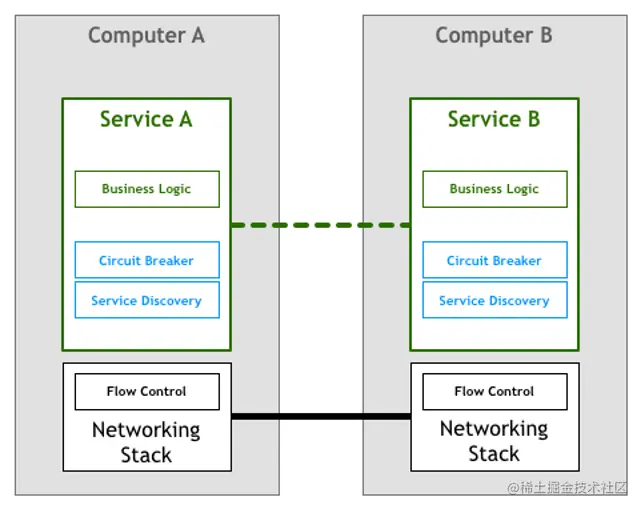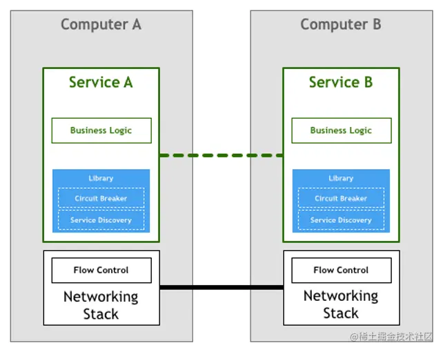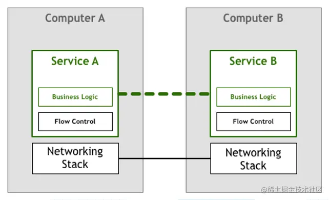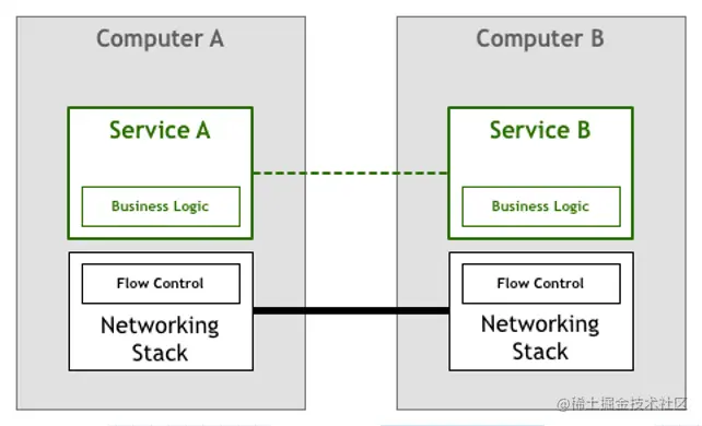 为了能够服务自己处理网络通信所面临的丢包、乱序、重试等一系列流控问题,因此服务实现中,除了业务逻辑外,还夹杂着对网络传输问题的处理逻辑。