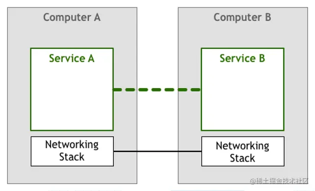 服务A和服务B想要通讯,于是添加了网络传输,大佬建立了一套底层能够传输字节码和电子信号。