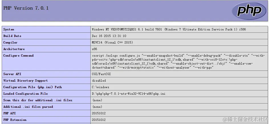 extension_dir = <指向扩展库目录的路径> - extension_dir 需要指向存放 PHP 扩展库文件的目录。可以是绝对路径(如 "C:\PHP\ext")或相对路径(如 ".\ext")。在 php.ini 文件中要加载的扩展库都必须在 extension_dir 所指定的目录之中。extension_dir =D:\php\php-7.0.1-nts-Win32-VC14-x86\ext