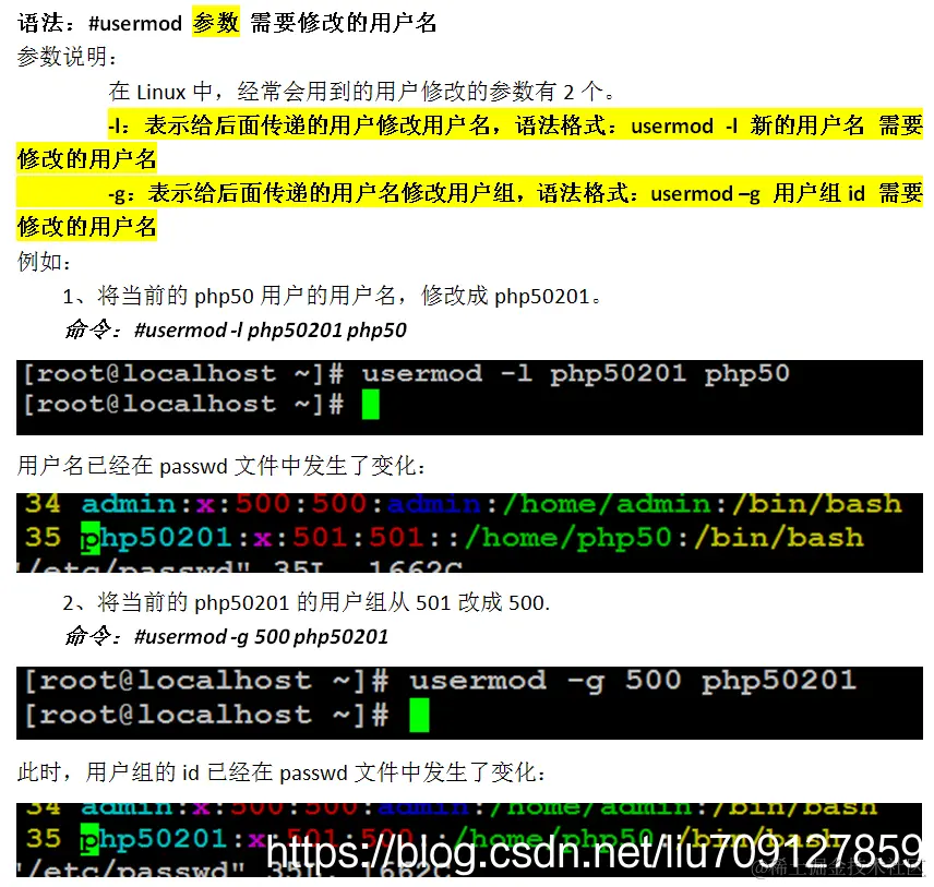 语法格式:#groupmod -n 新的用户组名 旧的用户组名