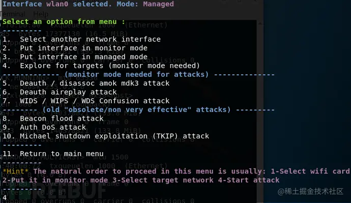 收集的信息越多,对于爆破的成功率越高,这里我们选择****1这个无线信号进行爆破。