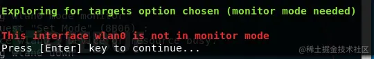 首先修改一下网卡模式:监听模式,否则会提示如下内容:
