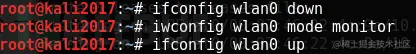iwconfig wlan0 mode monitor //修改到监听模式