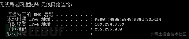连接WiFi,可以获取到IP地址,和网关也通: