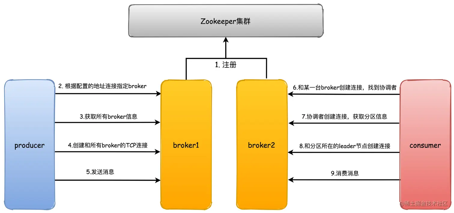 bootstrap.servers属性,然后选择一台broker创建TCP连接,发送请求找到协调者所在的broker - 然后再和协调者broker创建TCP连接,获取元数据