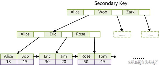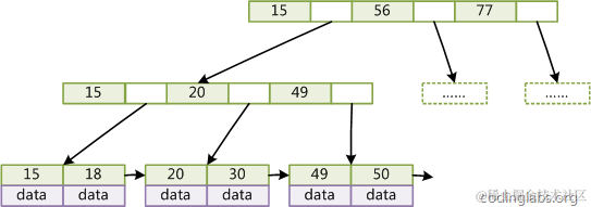 如图4所示,在B+Tree的每个叶子节点增加一个指向相邻叶子节点的指针,就形成了带有顺序访问指针的B+Tree。做这个优化的目的是为了提高区间访问的性能,例如图4中如果要查询key为从18到49的所有数据记录,当找到18后,只需顺着节点和指针顺序遍历就可以一次性访问到所有数据节点,极大提到了区间查询效率。