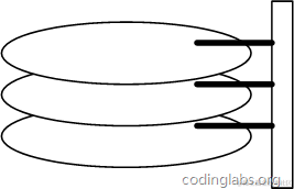 一个磁盘由大小相同且同轴的圆形盘片组成,磁盘可以转动(各个磁盘必须同步转动)。在磁盘的一侧有磁头支架,磁头支架固定了一组磁头,每个磁头负责存取一个磁盘的内容。磁头不能转动,但是可以沿磁盘半径方向运动(实际是斜切向运动),每个磁头同一时刻也必须是同轴的,即从正上方向下看,所有磁头任何时候都是重叠的(不过目前已经有多磁头独立技术,可不受此限制)。