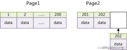 如果表使用自增主键,那么每次插入新的记录,记录就会顺序添加到当前索引节点的后续位置,当一页写满,就会自动开辟一个新的页。如下图所示: