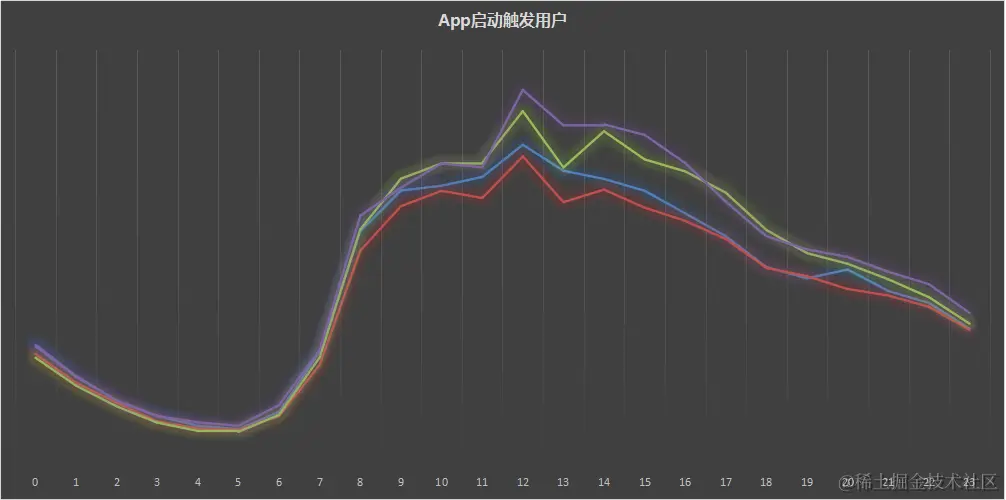 如图中的用户活跃情况,可在9点开始,通过几轮不同时间段对比,即可选出点击率最高的间段作为最优触达时间。