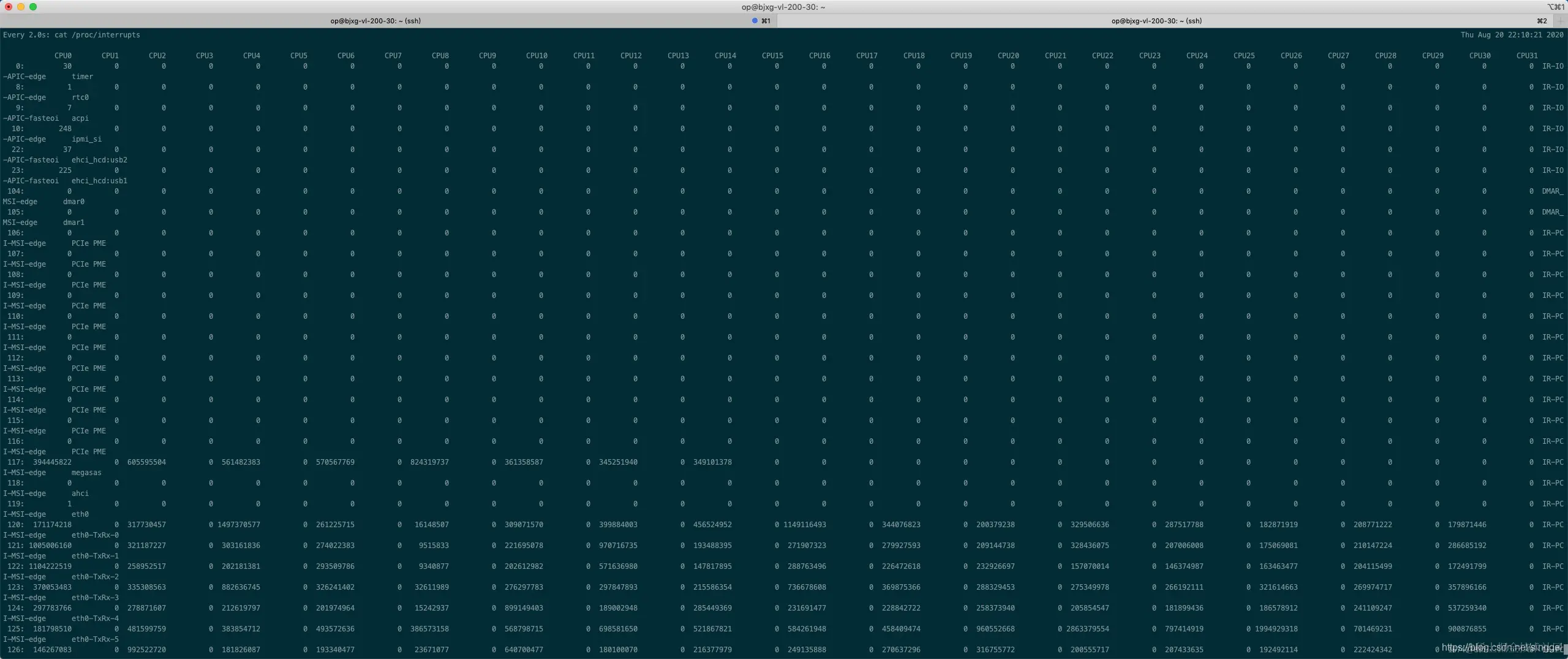 /proc/interrupts文件来分析具体的中断类型。