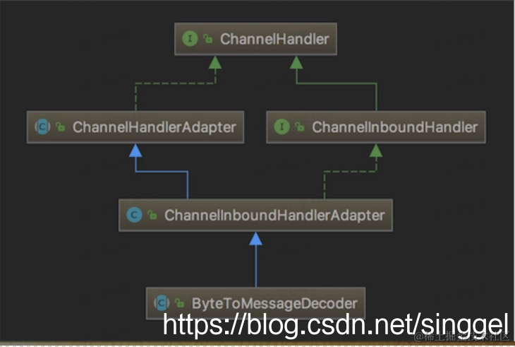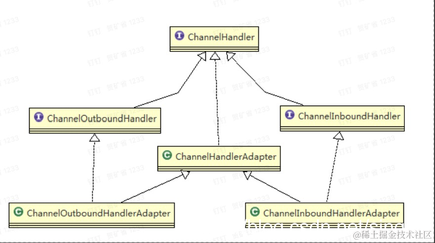- ChannelHandler 本身并没有提供很多方法,因为这个接口有许多的方法需要实现,方便使用期间,可以继承它的子类