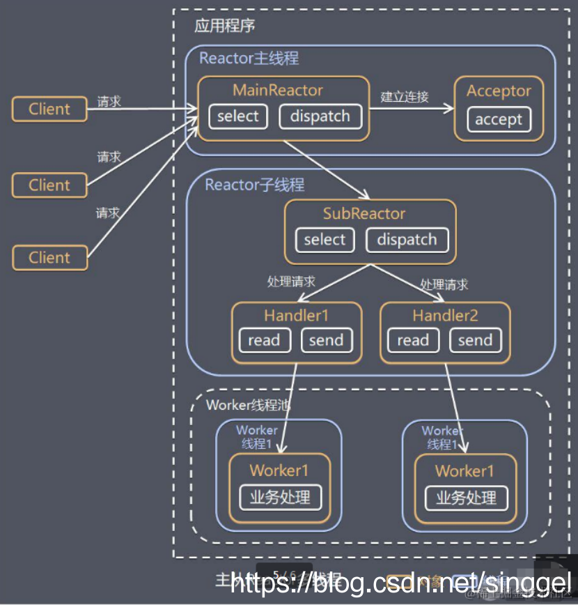 - 主从 Reactor 多线程