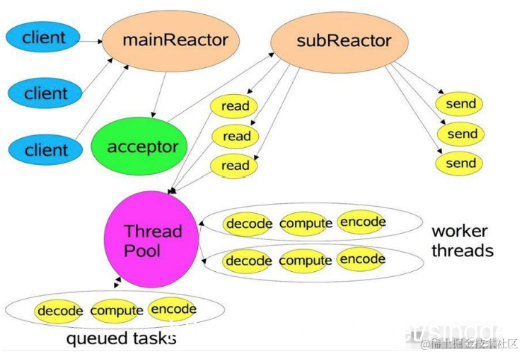 Netty 线程模式(Netty 主要基于主从 Reactor 多线程模型做了一定的改进,其中主从 Reactor 多线程模型有多个 Reactor)