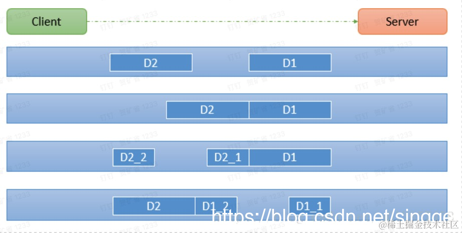 由于TCP无消息保护边界, 需要在接收端处理消息边界问题,也就是我们所说的粘包、拆包问题, 看一张图