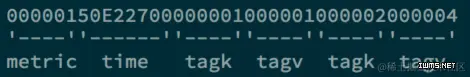 他的timestamp是小时对齐的,也就是说一个row key下最多存储一个小时的数据。并且需要将构成row key的metric和tags都转成对应的uid来减少存储空间,避免Hfile索引太大。下图是真实的row key示例。