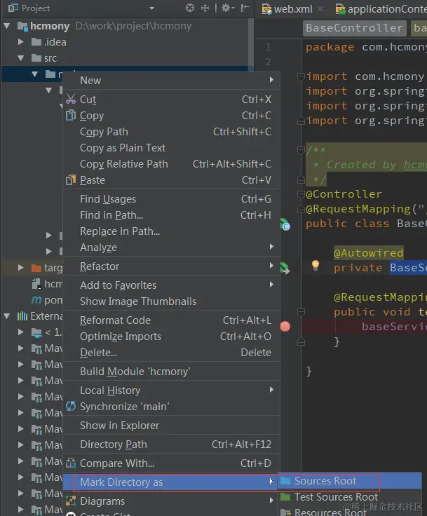 如果没有com.hcmony 就自己在main 下面java 新建一个包取名com.hcmony
