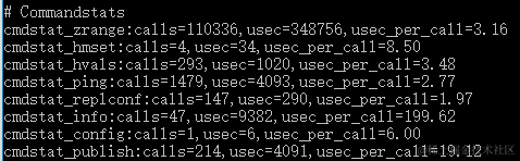cmdstat_XXX: calls=XXX,usec=XXX,usec_per_call=XXX