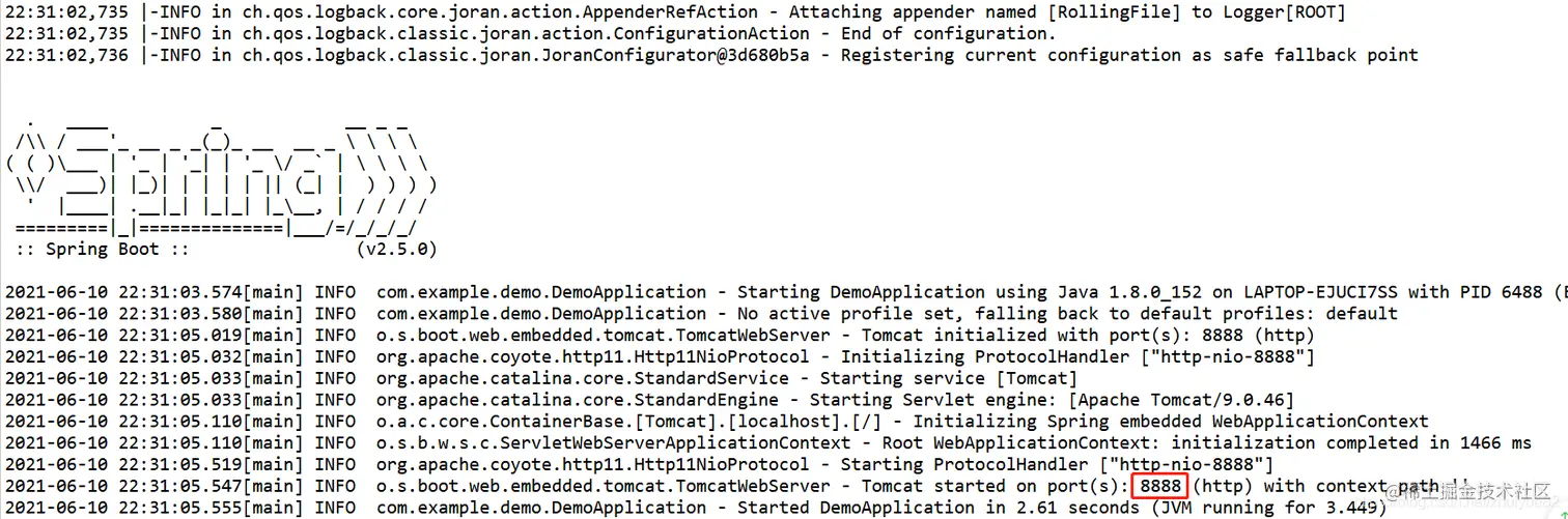 找到DemoApplication.java ,直接运行main,出现下图即表示成功