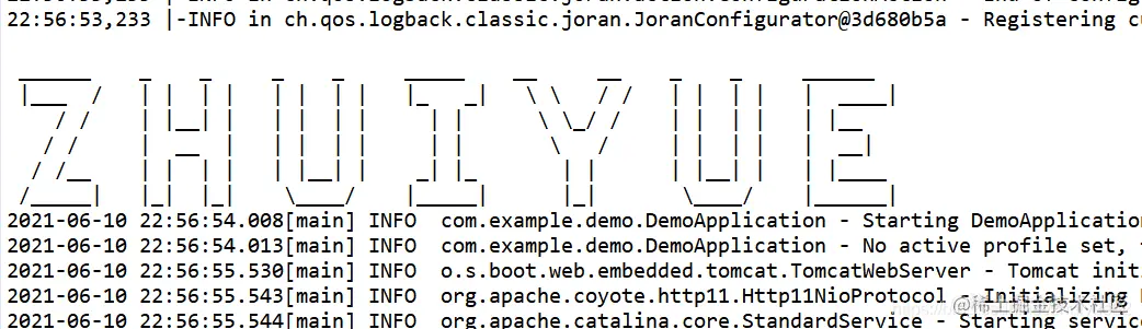 每次我们启动spring boot项目时,控制台默认会打印“spring boot”几个大字,这个我们是可以修改的 ,创建一个banner.txt,放到配置文件同目录下,然后通过下面这个网站生成自己想要的字符。如我这里改成我的网名:zhuiyue