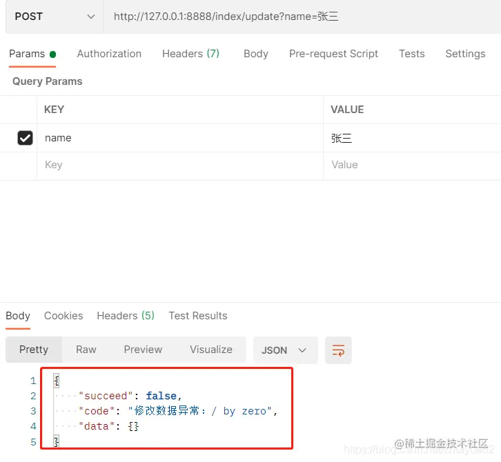 System.out.println(1 / 0 + "修改一条数据姓名为:" + name);