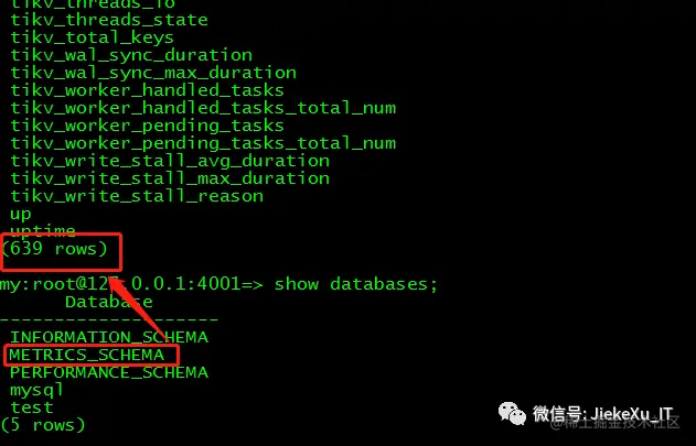 my:root@127.0.0.1:4001=> use METRICS_SCHEMA;