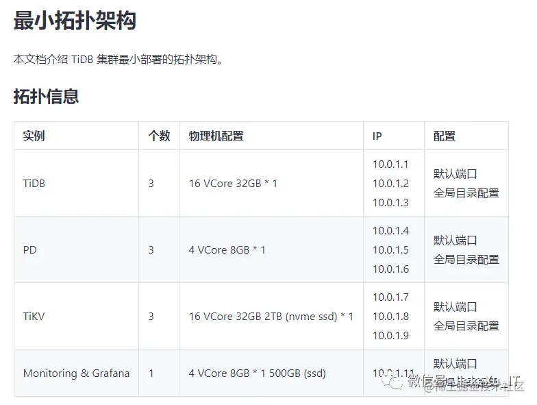 总的来说,大体上由 TiDB 、TiKV 、 PD 三部分集群构成加上 Grafana 、dashboard 等监控服务,看了下面最小部署的拓扑图,个人学习想要在自己的笔记本上安装这么一套环境那绝对是不可能的。