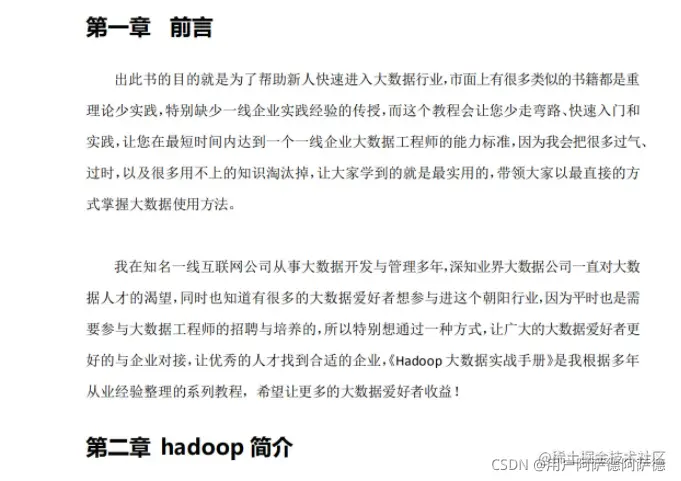 出此书的目的就是为了帮助新人快速进入大数据行业,市面上有很多类似的书籍都是重理论少实践,特别缺少一线企业实践经验的传授,而这个手册会让您少走弯路、快速入门。里面包含有hadoop生态圈介绍以及机器学习算法介绍