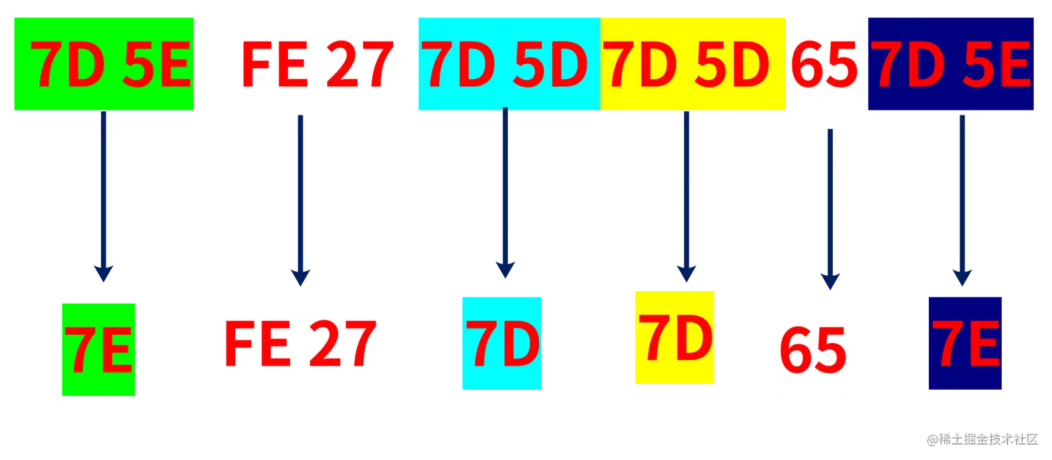 那么我们要能够提取两个7e之间的协议数据帧,同时还原帧中的所有的7e。
