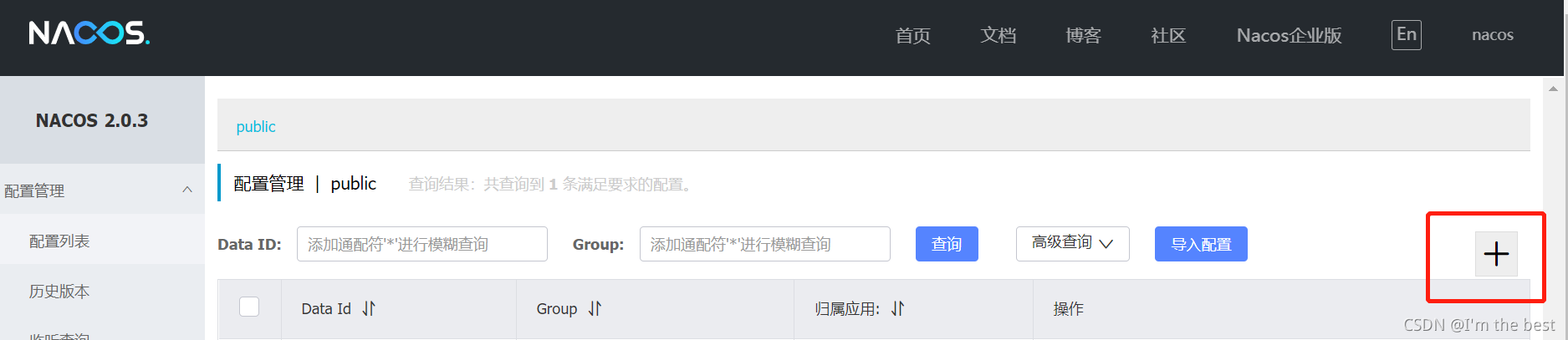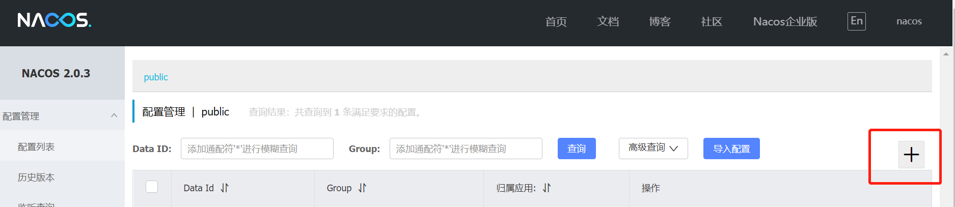 注意:当前匹配规则为applicationName.yml(还可以设置开发版本比如dev、master详情参考一下nacos手册)